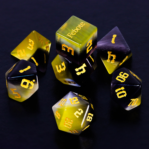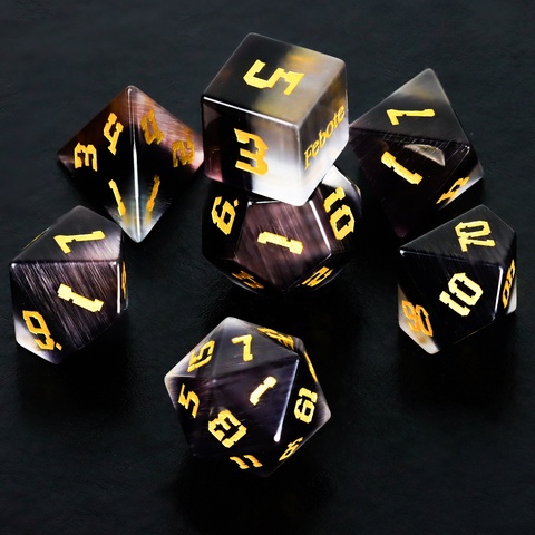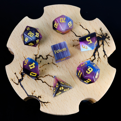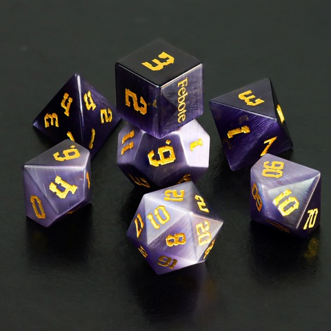 Fabrika toptan dnd zar koyu mor kedi göz taş zar seti dundunand RPG için özel yazı ve logo RPG