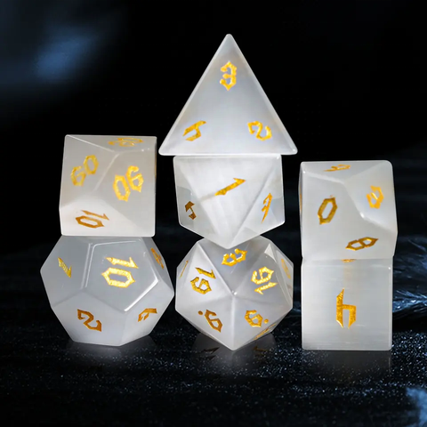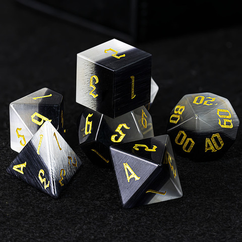 Özel Dicedragons ve zindan zar beyaz kedi gözü zar rol yapma oyunları için rpgpolyhdral zar seti cam